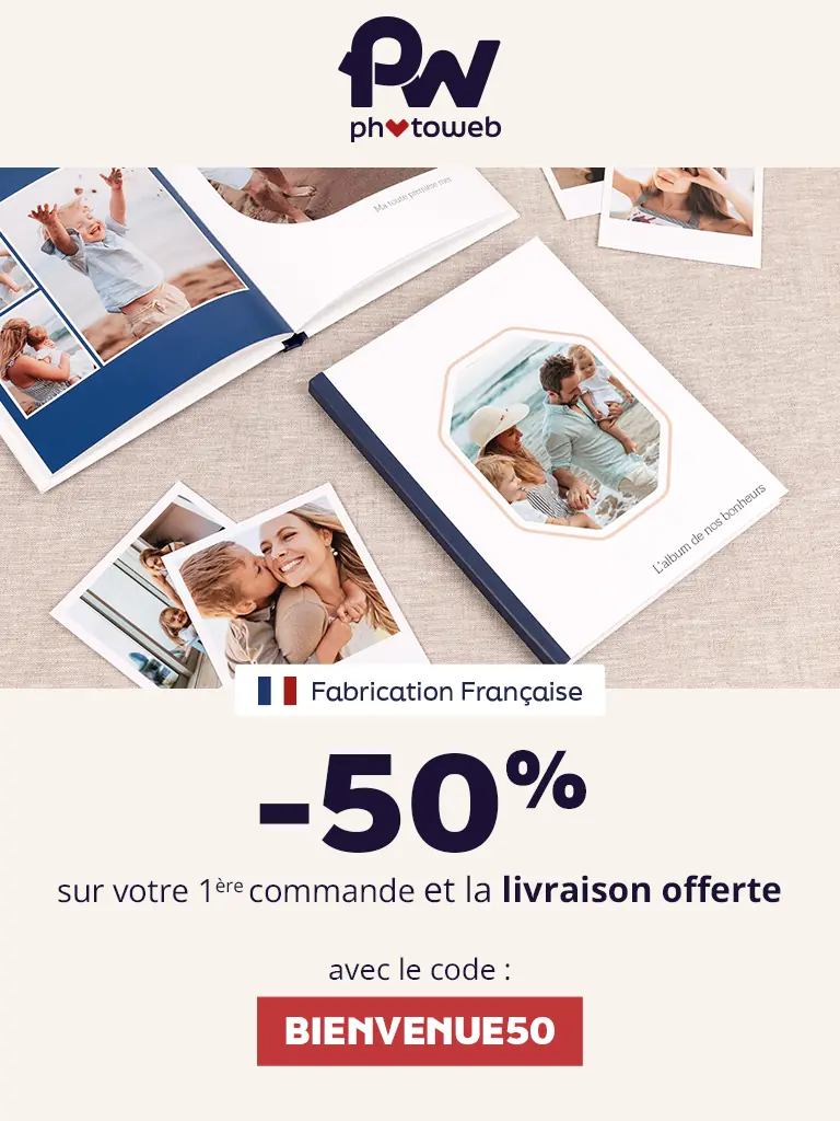 Photoweb.fr offre une large gamme incluant impressions photo, faire-part naissance et mariage, calendriers, mugs, objets déco, livres photo, toiles photo, tableaux sur toile et cadeaux personnalisés pour tous vos événements comme mariages ou anniversaires.